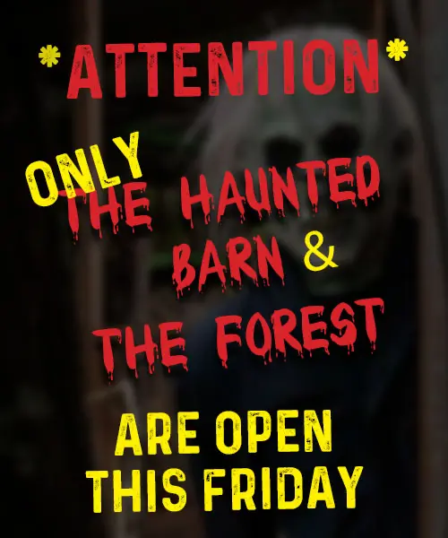 Step into a world where shadows move, screams echo, and every turn could be your last. Whether you’re boarding the haunted Hayride, braving the darkness of the Forest, or getting trapped inside the twisted Haunted Barn, one thing is certain: fear is guaranteed.
